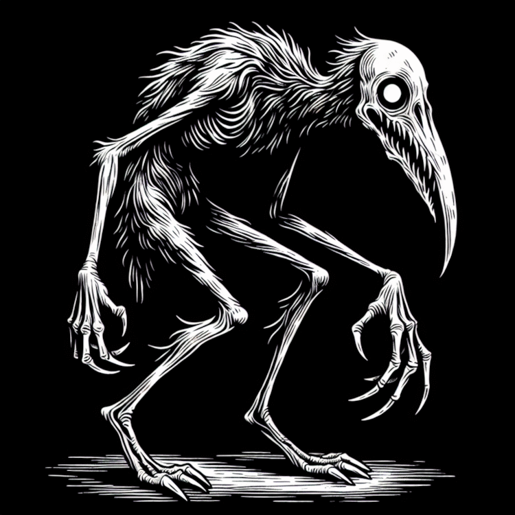 This is a creepy bird-like creature that's walking around on two legs.
